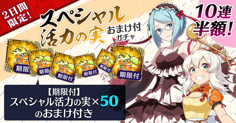 【2日間限定&10連半額!】スペシャル活力の実おまけ付ガチャ