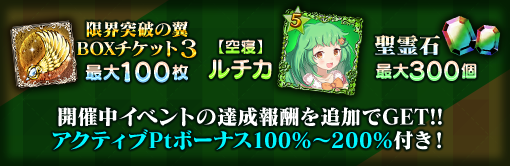 | 限界突破の翼 BOXチケット3 | 最大30個 | 最大60個 | 最大100個 |