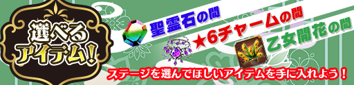 聖霊石や★6チャーム、開花の苗木がそれぞれドロップする「選べるアイテム!」ステージに挑戦できる!