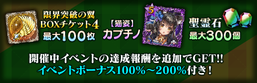 | 限界突破の翼 BOXチケット4 | 最大30個 | 最大60個 | 最大100個 |
