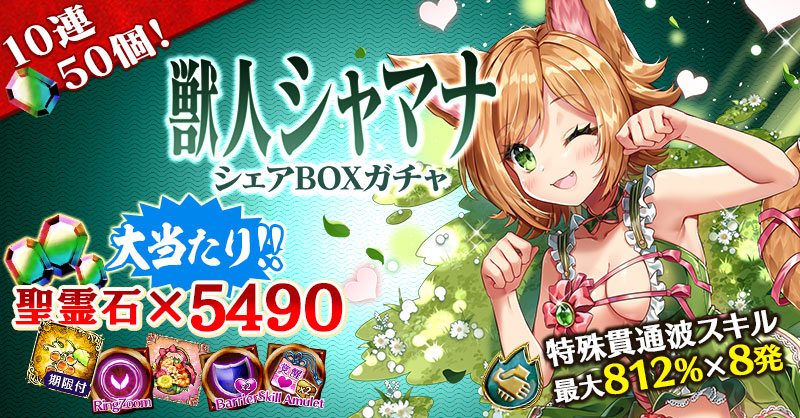 【『聖霊石×5490』やNEW使い魔が当たるチャンス!】獣人シャマナシェアBOXガチャ