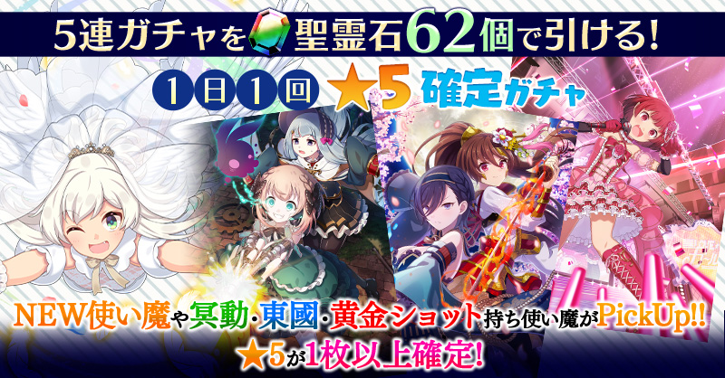 【一部NEW使い魔や冥動・東國・黄金ショット持ち使い魔などがPickUP】1日1回★5確定ガチャ