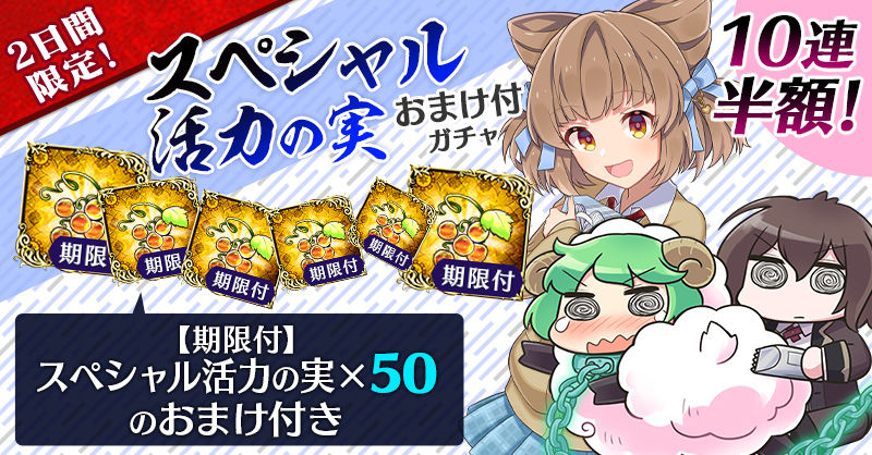 【2日間限定&10連半額!】スペシャル活力の実おまけ付ガチャ