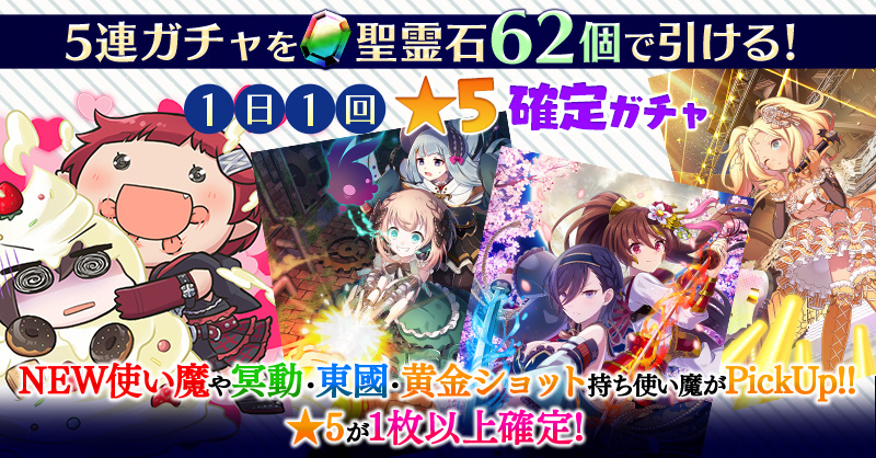 【一部NEW使い魔や冥動・東國・黄金ショット持ち使い魔がPickUP】1日1回★5確定ガチャ