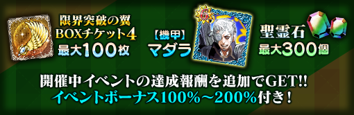 | 限界突破の翼 BOXチケット4 | 最大30枚 | 最大60枚 | 最大100枚 |