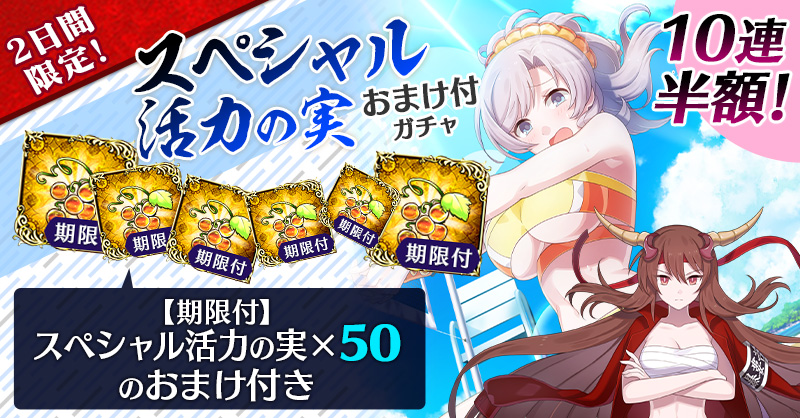 【2日間限定&10連半額!】スペシャル活力の実おまけ付ガチャ