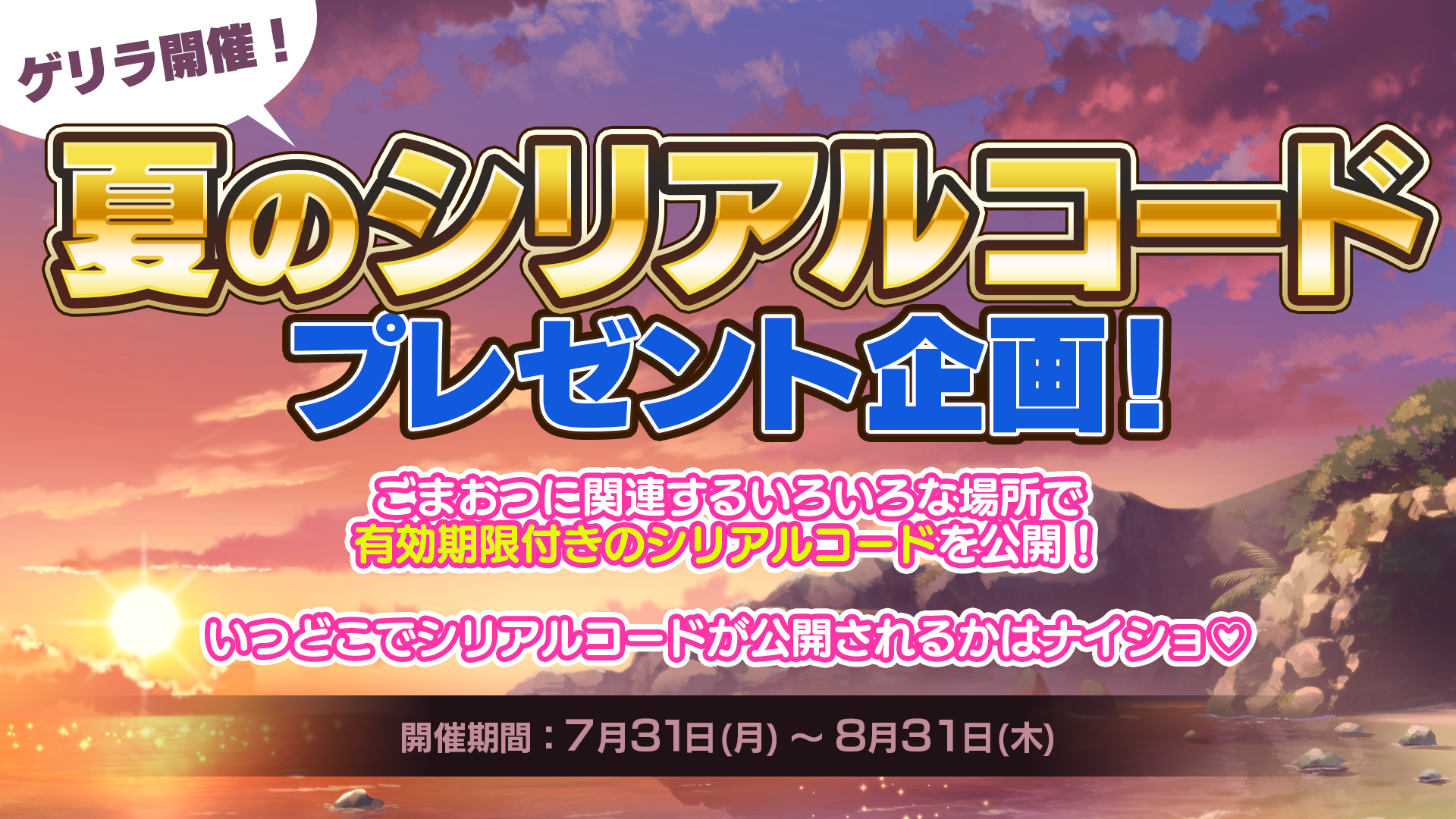 【ゲリラ開催 いつどこでシリアルコードが公開されるかはナイショ♡】夏のシリアルコードプレゼント企画!