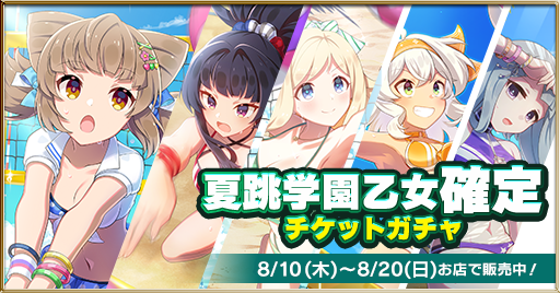 【夏跳】シリーズの学園乙女がいずれか1体確定するチケットガチャが引ける!