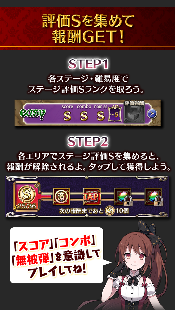 ステージ評価Sランクを各ステージで取ると使い魔や使い魔を育成するために必要な素材が手に入る!