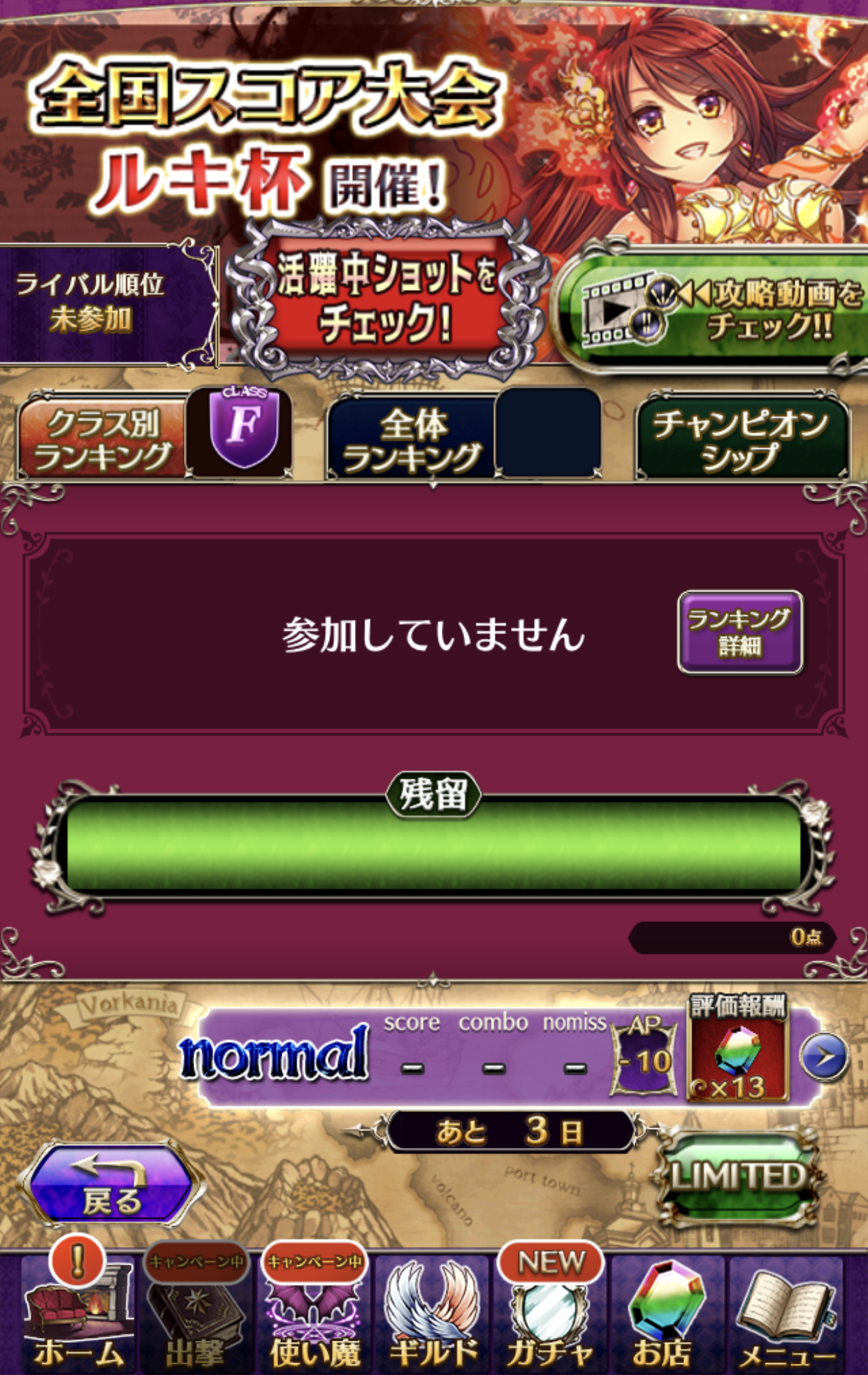 毎週月曜日の0時~日曜日の23時59分の間に、ゲーム開始日から30日までのマスターさん限定で参加できるスコア大会が開催される。