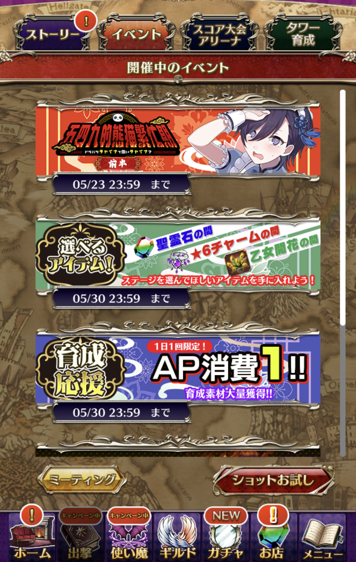 イベントでしか手に入らない使い魔もいるほか、育成素材なども多く手に入るので、ぜひ参加して戦力を強化しよう!