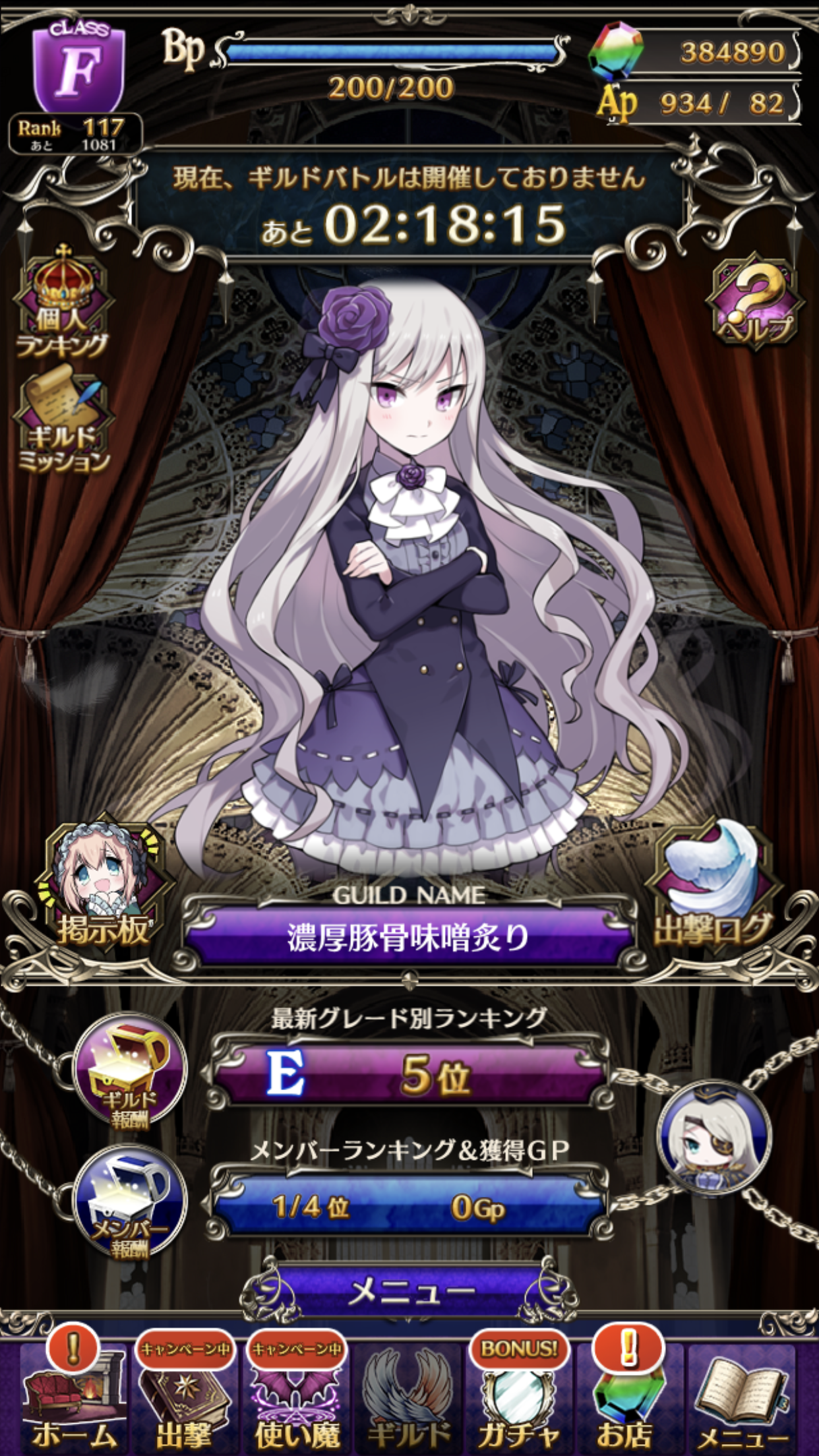 ホーム画面下部[ギルド]よりギルド画面に行くことができます。