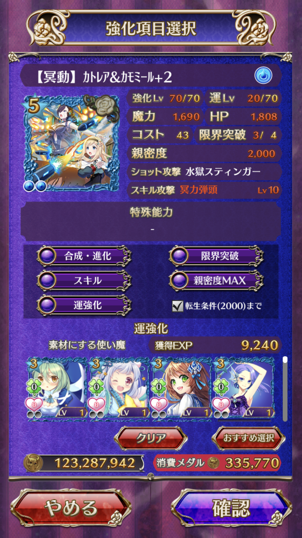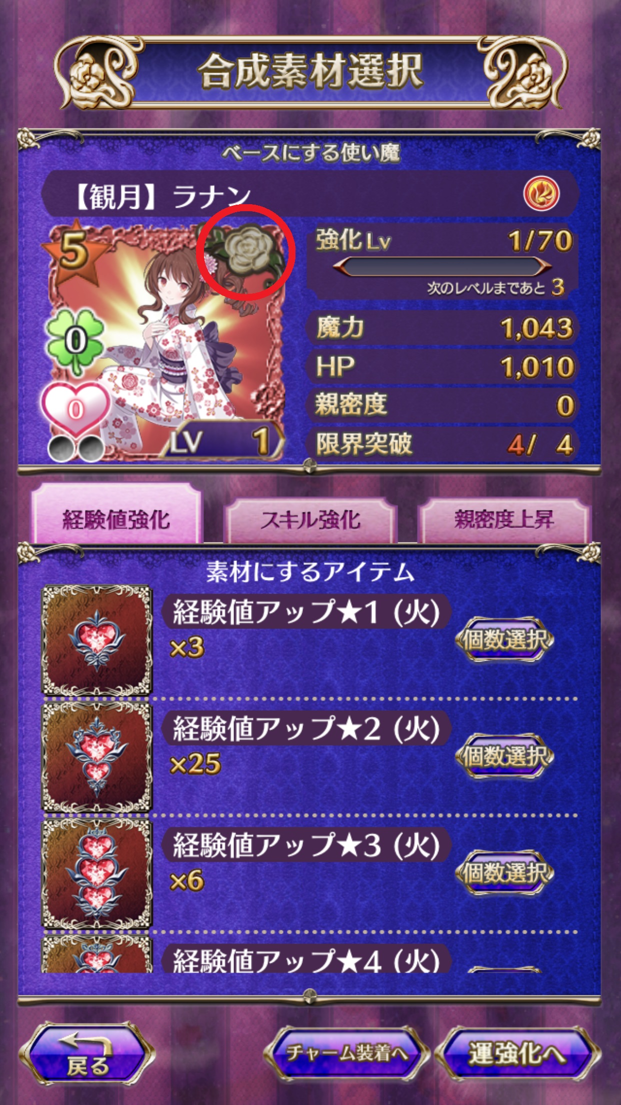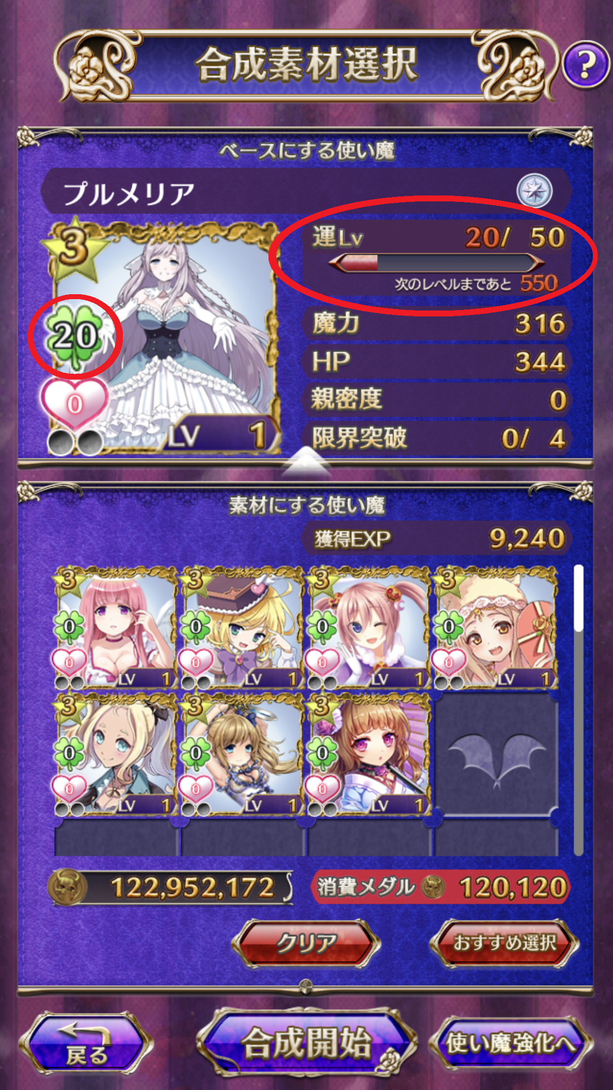 運レベルは他の使い魔を運素材として合成することにより上昇させることができる!