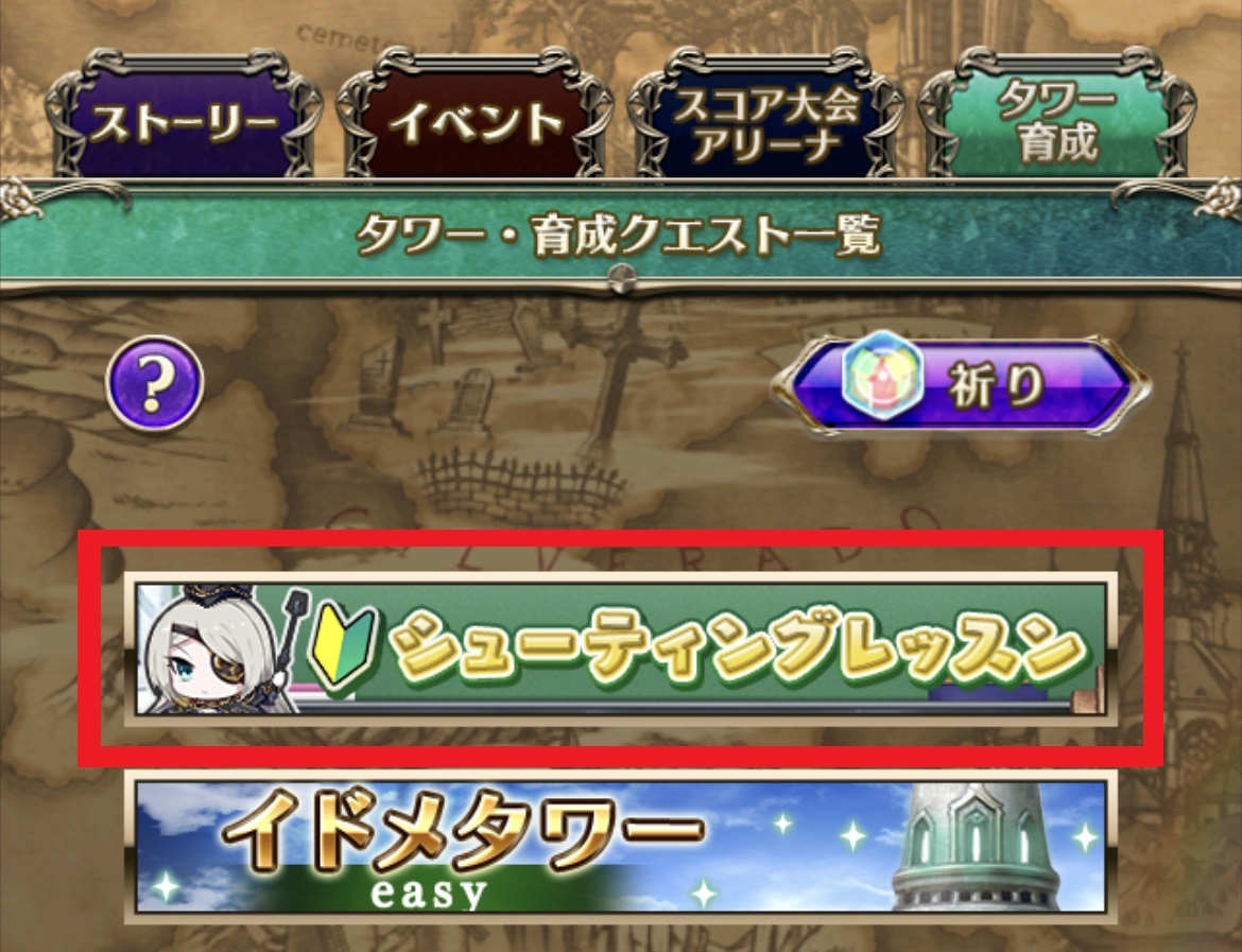 ホーム画面下部[出撃]>[タワー育成]>[シューティングレッスン]よりレッスンを受けることができます。
