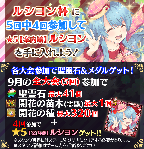 [9/11 一部修正]【毎週土曜!4回参加で★5【案内嬢】ルシヨンGET】9月全国スコア大会!!