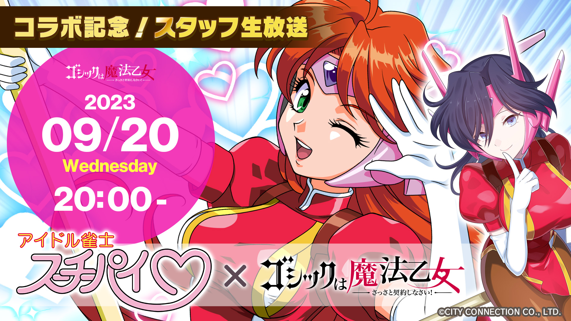アイドル雀士スーチーパイとのコラボを記念して、9/20(水)20:00より「ゴシックは魔法乙女」スタッフによる生放送を実施します!