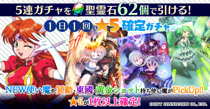 【一部NEW使い魔や冥動・東國・黄金ショット持ち使い魔がPickUP】1日1回★5確定ガチャ