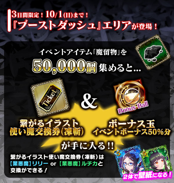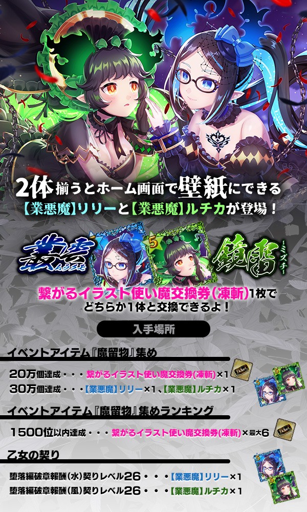 | 復刻悪魔交換券(凍斬) リリーとルチカの復刻使い魔と交換ができる! | 最大50枚 | |