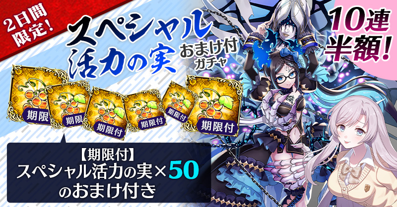 【2日間限定&10連半額!】スペシャル活力の実おまけ付ガチャ