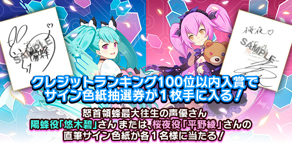 「サイン色紙抽選券」を獲得したプレイヤーの中から抽選で各1名様ずつサイン色紙が当選します。