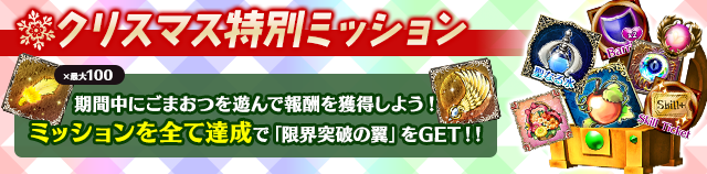 クリスマスイベント期間内にミッションをクリアして限界突破の翼や限界突破の羽根などをGETしよう‼