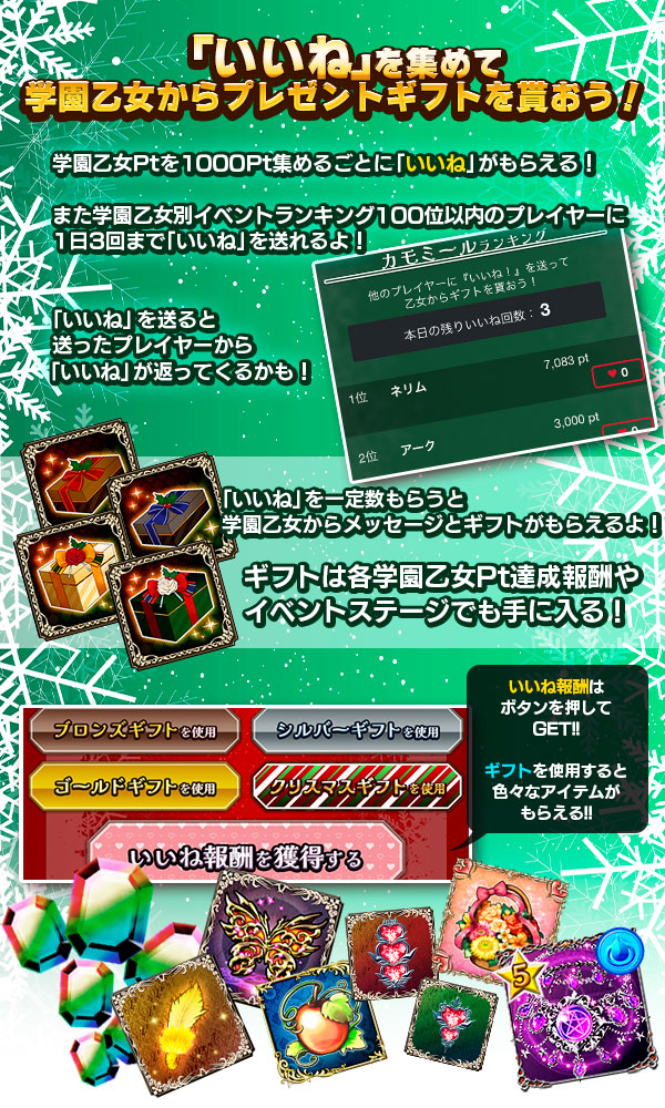 | いいね達成報酬 | ブロンズギフト シルバーギフト ゴールドギフト クリスマスギフト |