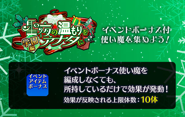 クリスマスイベント【聖夜の温もりをアナタに~学園編~】ボーナス一覧
