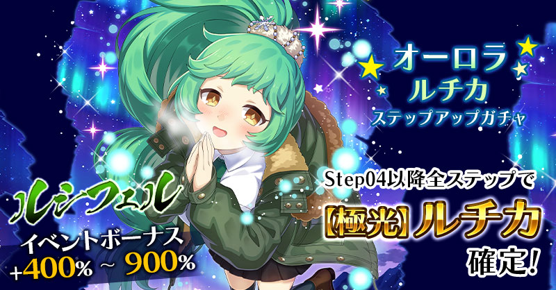 【Step04以降全ステップでイベントボーナス+400%~900%持ち【極光】ルチカ確定!】オーロラルチカステップアップガチャ