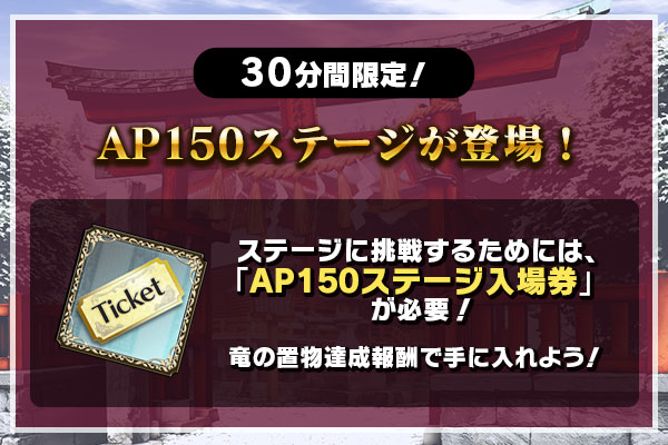 | AP150ステージ入場券 「30分限定 AP150ステージ」ステージに挑戦できます! | 最大1枚 | |