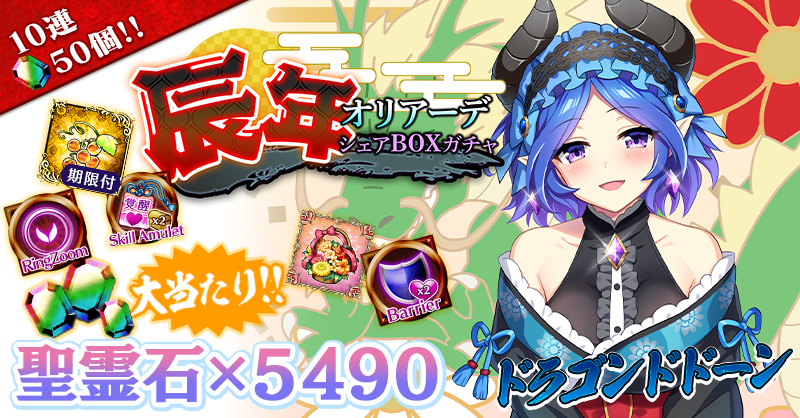 【『聖霊石×5490』やNEW使い魔が当たるチャンス!】辰年オリアーデシェアBOXガチャ