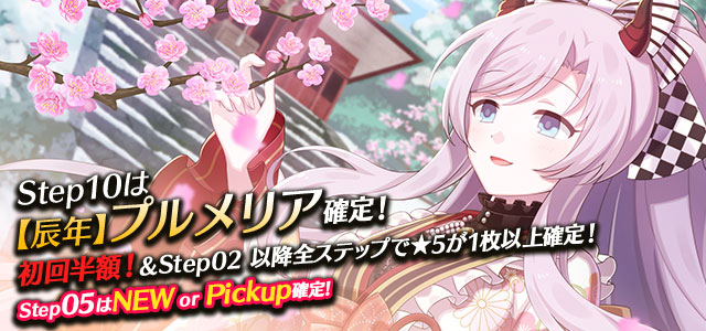 - ステップアップガチャは、Step数によってガチャの提供内容が変化します。 Step数の上昇により必ずしも提供内容がより良い内容に変化することを保証するわけではありません。