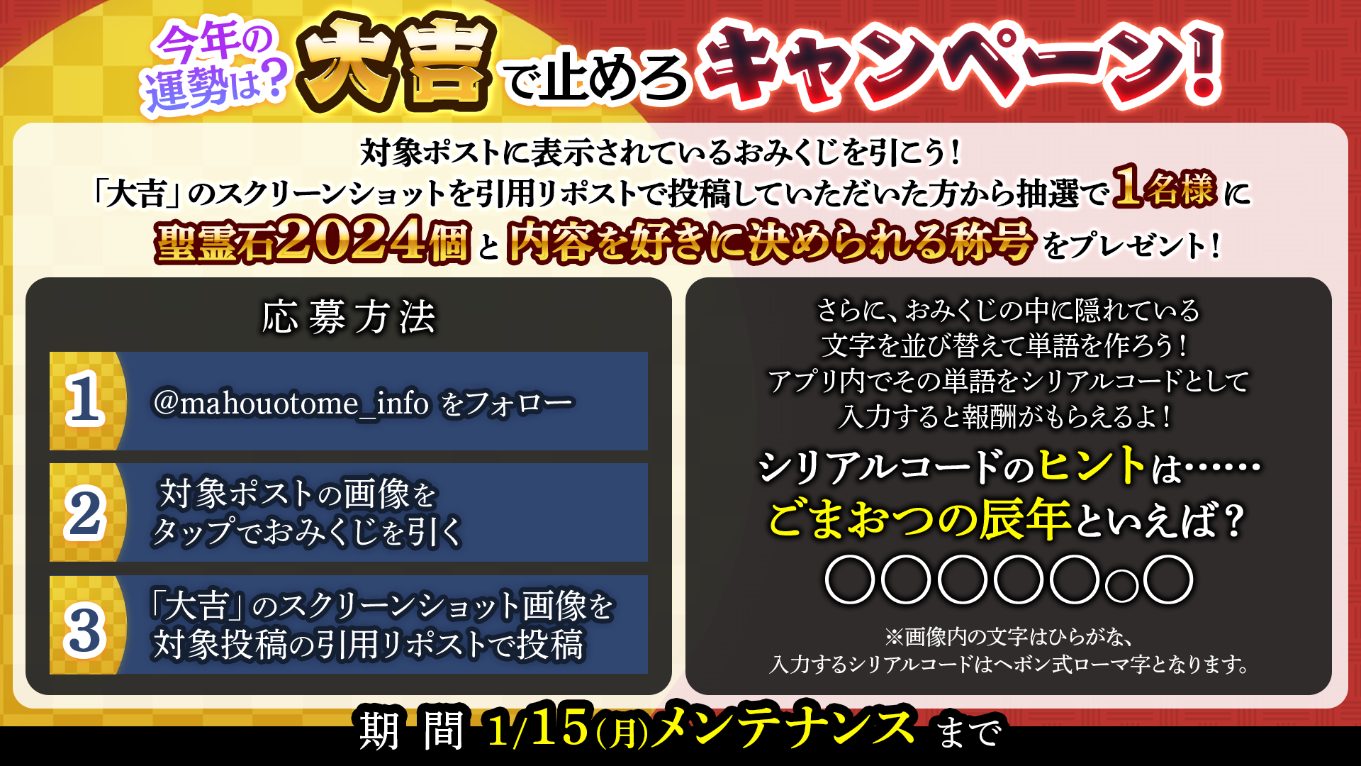 【聖霊石2024個&内容を好きに決められる称号を抽選でプレゼント!】今年の運勢は?大吉で止めろキャンペーン
