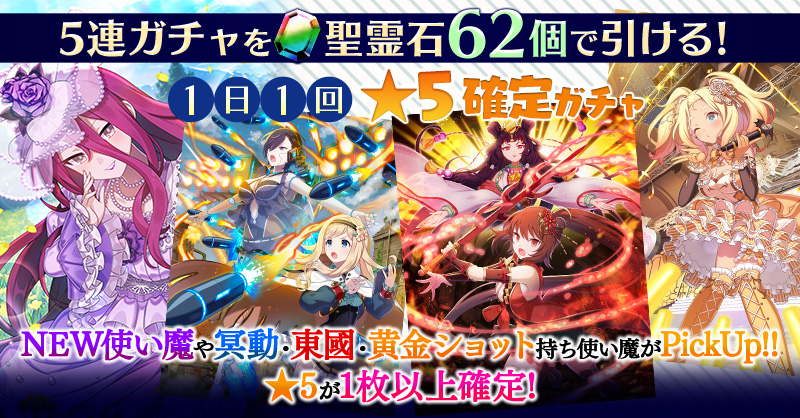 【一部NEW使い魔や冥動・東國・黄金ショット持ち使い魔がPickUP】1日1回★5確定ガチャ