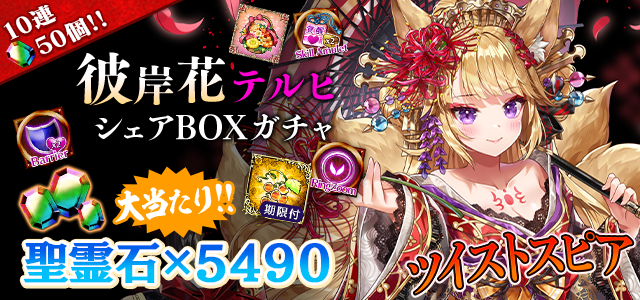 【『聖霊石×5490』やNEW使い魔が当たるチャンス!】彼岸花テルヒシェアBOXガチャ