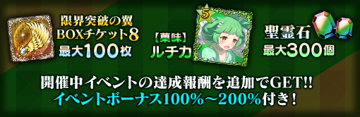 | 限界突破の翼 BOXチケット8 | 最大30個 | 最大60個 | 最大100個 |