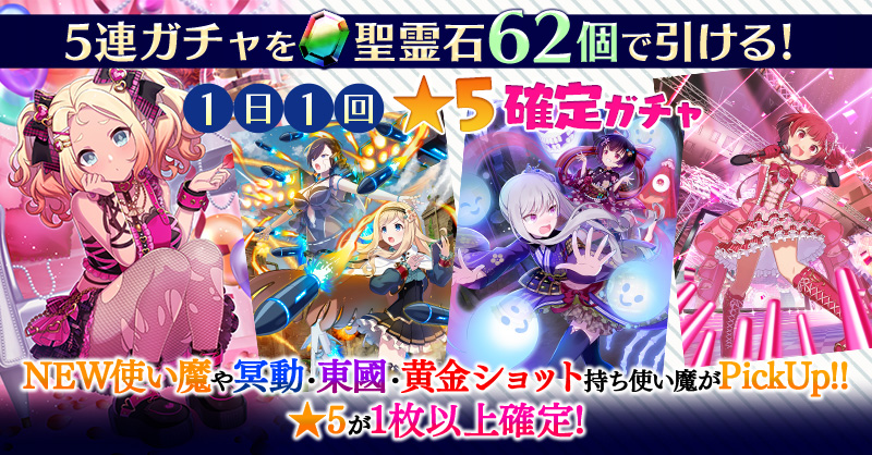 【一部NEW使い魔や冥動・東國・黄金ショット持ち使い魔がPickUP】1日1回★5確定ガチャ