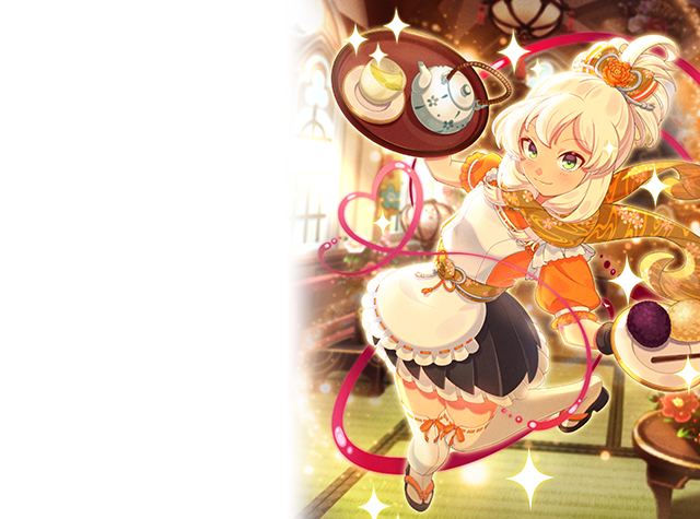 - 【和喫茶】アンゼリカ のおでかけ衣装は、2021年にリリースした「柿色茶屋娘」と同一の衣装となります。既に、該当の衣装を入手済の場合、新たに使い魔を入手しても衣装は付与されません。