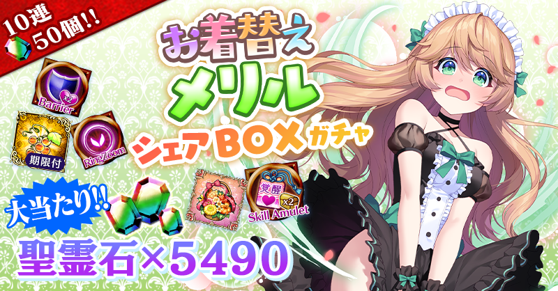 【『聖霊石×5490』やNEW使い魔が当たるチャンス!】お着替えメリルシェアBOXガチャ