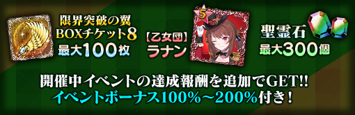 | 限界突破の翼 BOXチケット8 | 最大30個 | 最大60個 | 最大100個 |