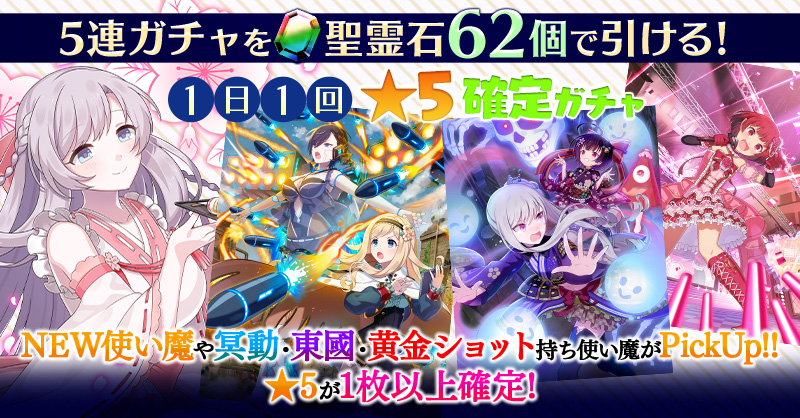 【一部NEW使い魔や冥動・東國・黄金ショット持ち使い魔がPickUP】1日1回★5確定ガチャ