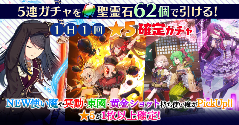 【一部NEW使い魔や冥動・東國・黄金ショット持ち使い魔がPickUP】1日1回★5確定ガチャ
