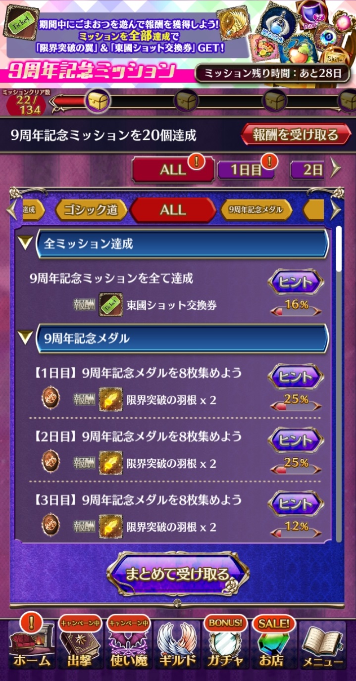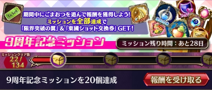 【限界突破の翼や東國ショット交換券など豪華報酬が手に入る!】9周年記念ミッションが登場!
