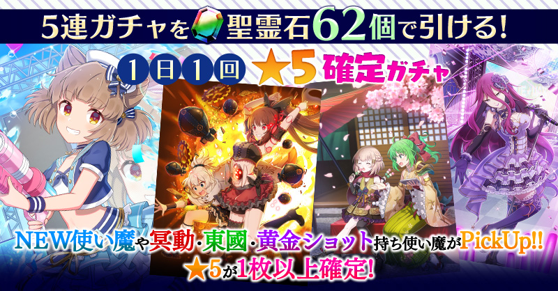 【一部NEW使い魔や冥動・東國・黄金ショット持ち使い魔がPickUP】1日1回★5確定ガチャ