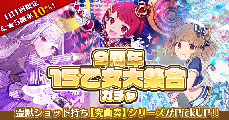 【1日1回限定&★5確率10%!】9周年15乙女大集合ガチャ