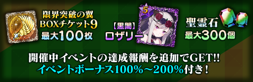 | 限界突破の翼 BOXチケット9 | 最大30個 | 最大60個 | 最大100個 |