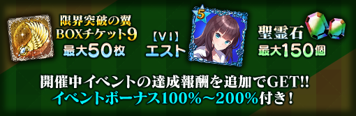| 限界突破の翼 BOXチケット9 | 最大15個 | 最大30個 | 最大50個 |