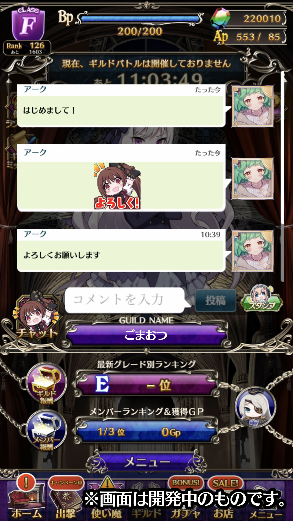 ギルドのTOP画面からメンバーと気軽に交流できるチャット機能を追加いたします。