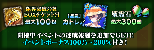 | 限界突破の翼 BOXチケット9 | 最大30個 | 最大60個 | 最大100個 |
