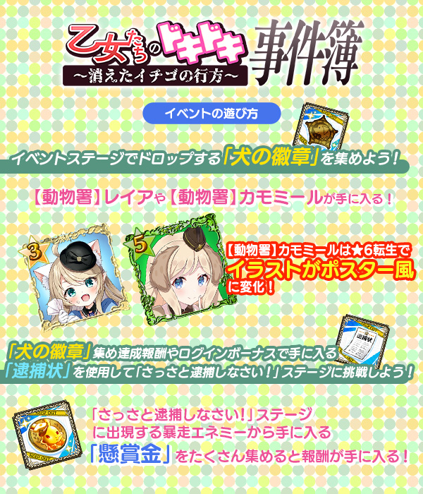 アイテム集めイベント【乙女たちのドキドキ事件簿~消えたイチゴの行方~】開催!