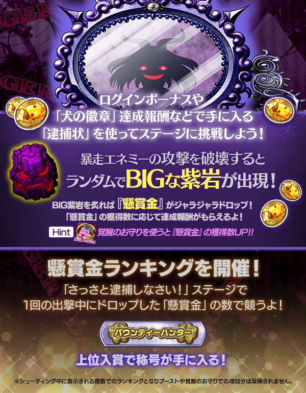 | 逮捕状 「さっさと逮捕しなさい!」ステージに挑戦できる! | 最大20枚 | |